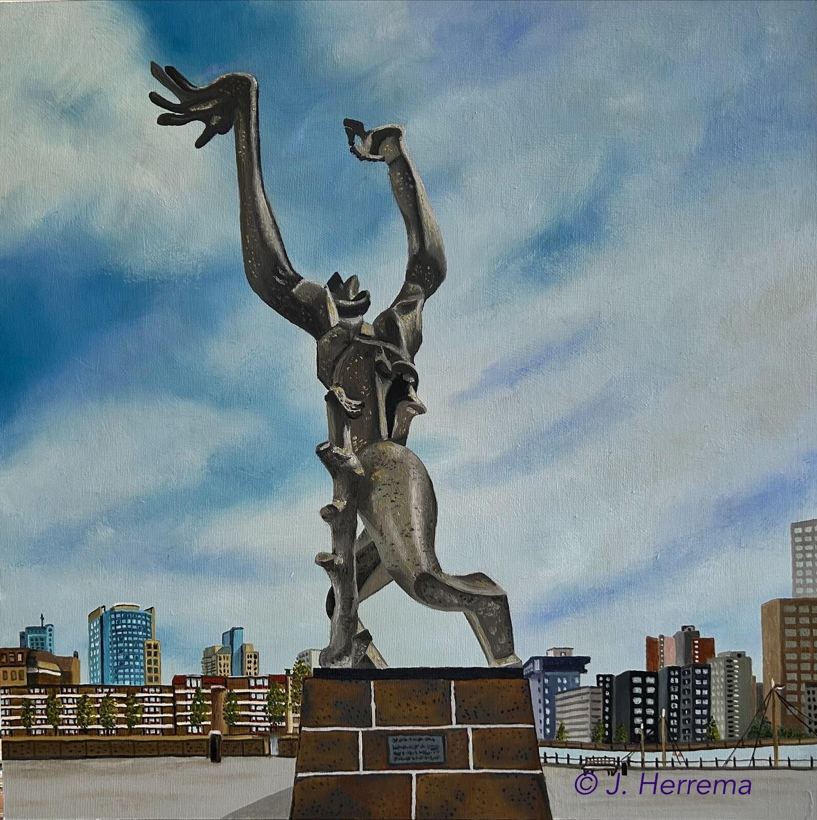 Jacqueline Herrema staat bekend om haar vermogen om Rotterdamse architectuur en iconische stadsgezichten met grote precisie in olieverf te vangen.